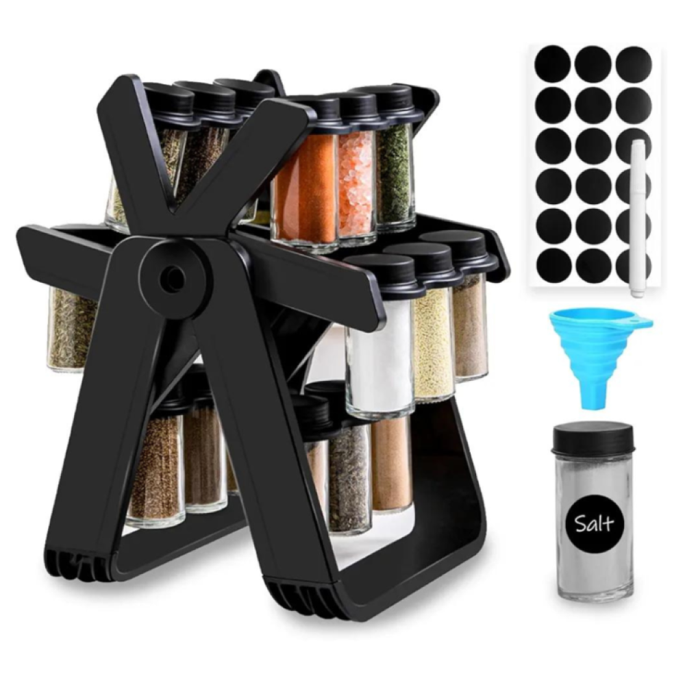 لتحفظ توابلك مرتبة وبأسلوب أنيق يضيف لمسة جمالية لمطبخك, مع منظم البهارات الدوار العصري مع 18 زجاجة.